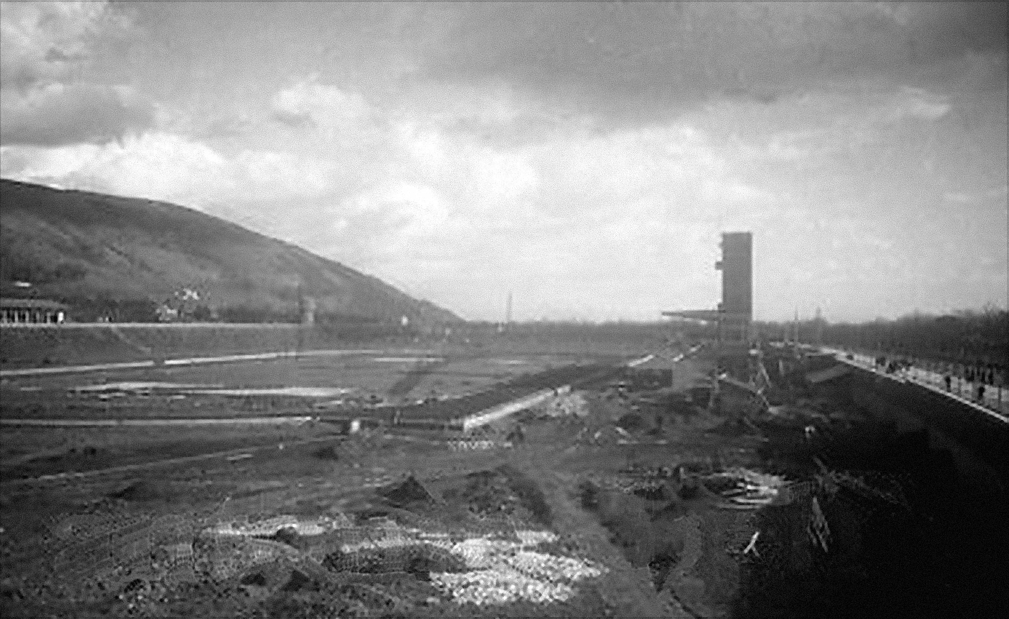 Una volta costruito fu pesantemente danneggiato dai bombardamenti della seconda guerra mondiale, per poi essere ristrutturato al termine. All’epoca aveva una capienza di 10.000 spettatori tra la tribuna centrale e una gradinata in legno dalla parte opposta. Immancabile la pista d’atletica leggera intorno al manto erboso e un campo accessorio sul lato nord dello stadio.