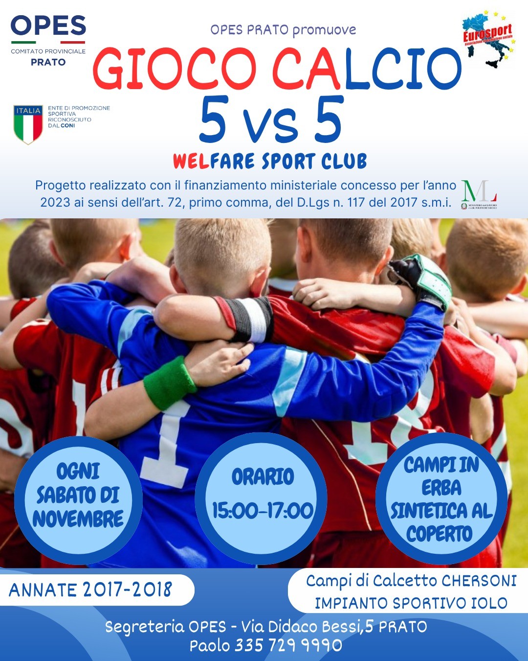 Il comitato provinciale Opes di Prato ha organizzato per il mese di novembre il progetto ‘Gioco-Calcio 5 contro 5’, rivolto a tutti i bambini e alle bambine nati negli anni 2017 e 2018. L’iniziativa rientra all’interno del progetto nazionale ‘Welfare Sport Club’, finanziato dal Ministero del Lavoro e delle Politiche Sociali. L’obiettivo è di fare svolgere attività sportiva ai giovanissimi atleti, senza l’assillo di un risultato, cercando di farli divertire ed esprimere con serenità, ciascuno secondo il proprio livello. La partecipazione dei bambini è gratuita.