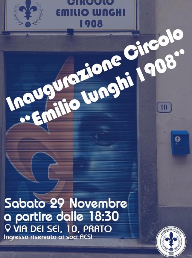 Un altro punto di ritrovo per i tifosi biancazzurri sta per aprire in città. Sabato 29 novembre alle ore 18:30 è prevista l’inaugurazione del Circolo Emilio Lunghi 1908, in Via Dei Sei N.10 (pieno centro storico di Prato).